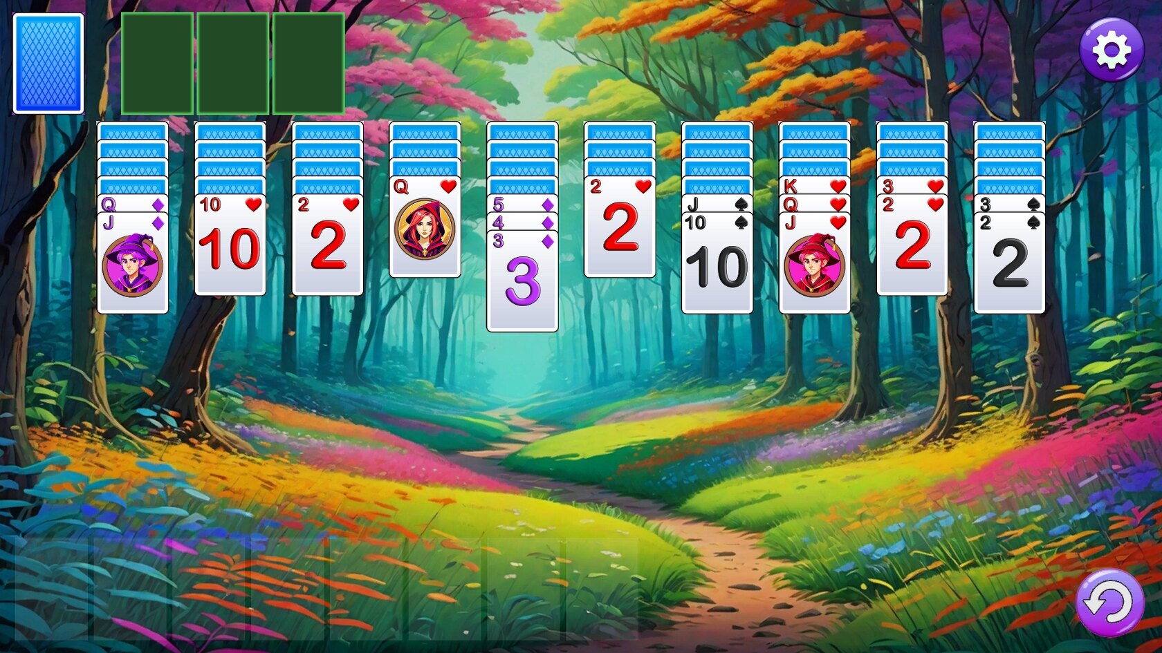 Magic spiders went loose and wove a web across the entire enchanted forest! You can only defeat magic with magic, so it’s up to the experienced wizard to take care of the situation. Enchanted Solitaire 3 offers, 30 types of layouts with a gradual difficulty curve, varying number of free cells and the ability to replay every levels in order to beat your best time.