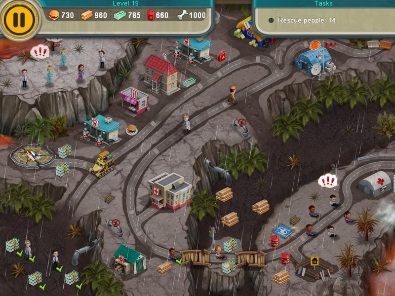 When Mother Nature does her worst, the Rescue Team does its best! Guide the brave members of the Rescue Team as they save people in distress and rebuild a devastated infrastructure after earthquakes, tsunamis, and volcanic eruptions leave a once prosperous land in ruins. You'll have to manage your resources well as you repair bridges and roads, restore factories and homes, and send doctors and rescue dogs to save the sick and injured. Work quickly as you command a fleet of machines ranging from helicopters and motorboats to airplanes and trains, and you'll beat the clock and win the gold! Strap in for the thrill ride of a lifetime and begin the adventure today!